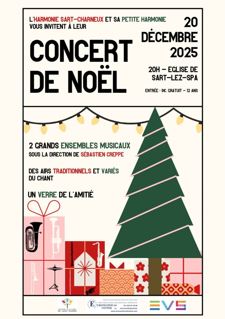 Ce samedi 20 décembre à 20h, l’Harmonie de Sart-Charneux, ainsi que sa Petite Harmonie, vous invitent à leur traditionnel concert de Noël à l’église de Sart.